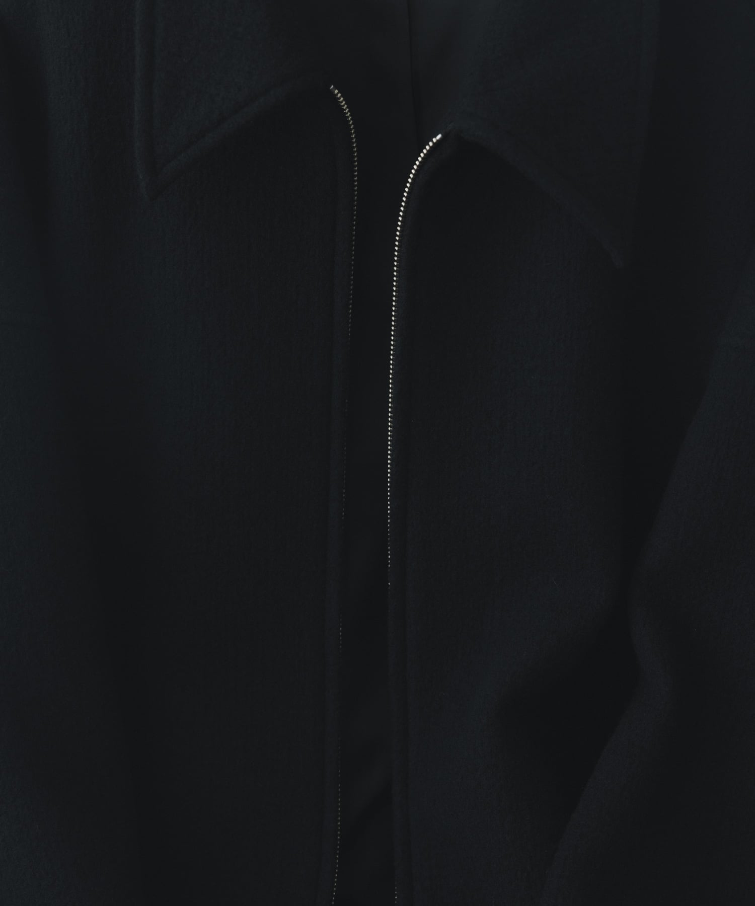 梳毛ウール100%を接結綾二重で織り上げ、極限まで縮絨を施した最上級のクレーターメルトンを採用した極上の冬アウター。表面にはクレーター状の凹凸が繊細に存在し、メルトン特有の端正さの中に僅かな荒さと表情を残したテキスタイル。重厚感のあるルックスに反して、ウール本来のしなやかさと軽さを併せ持つ。