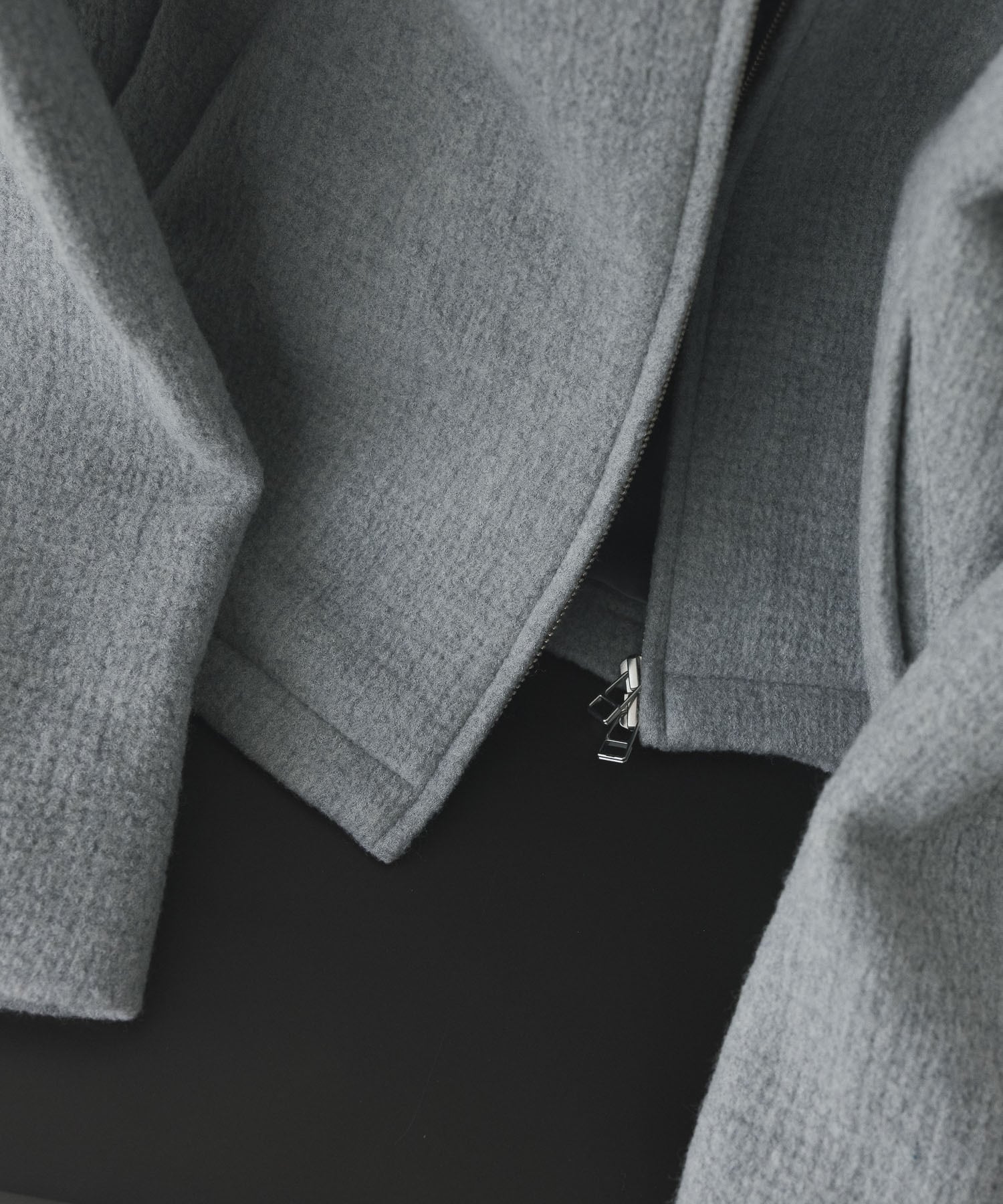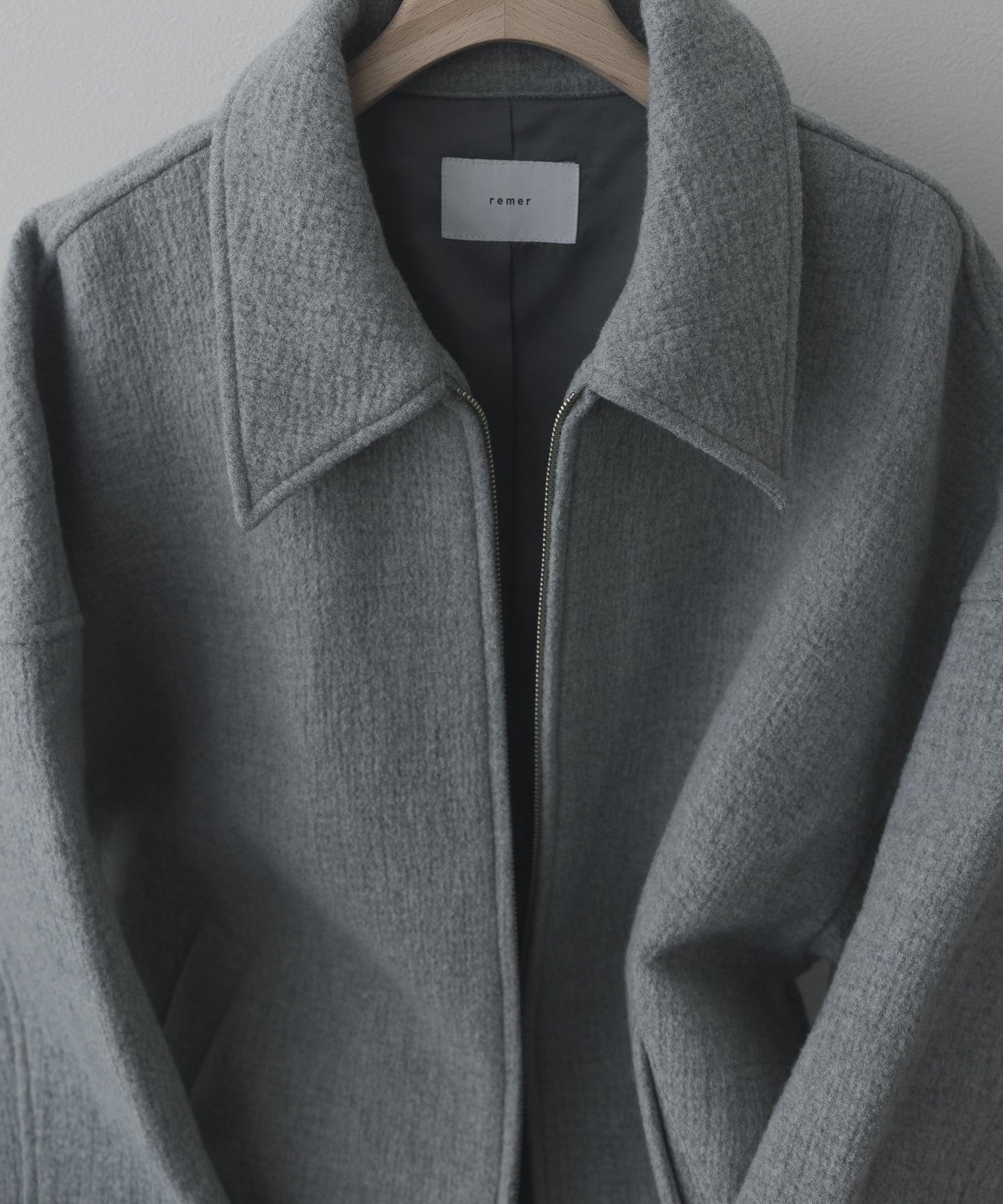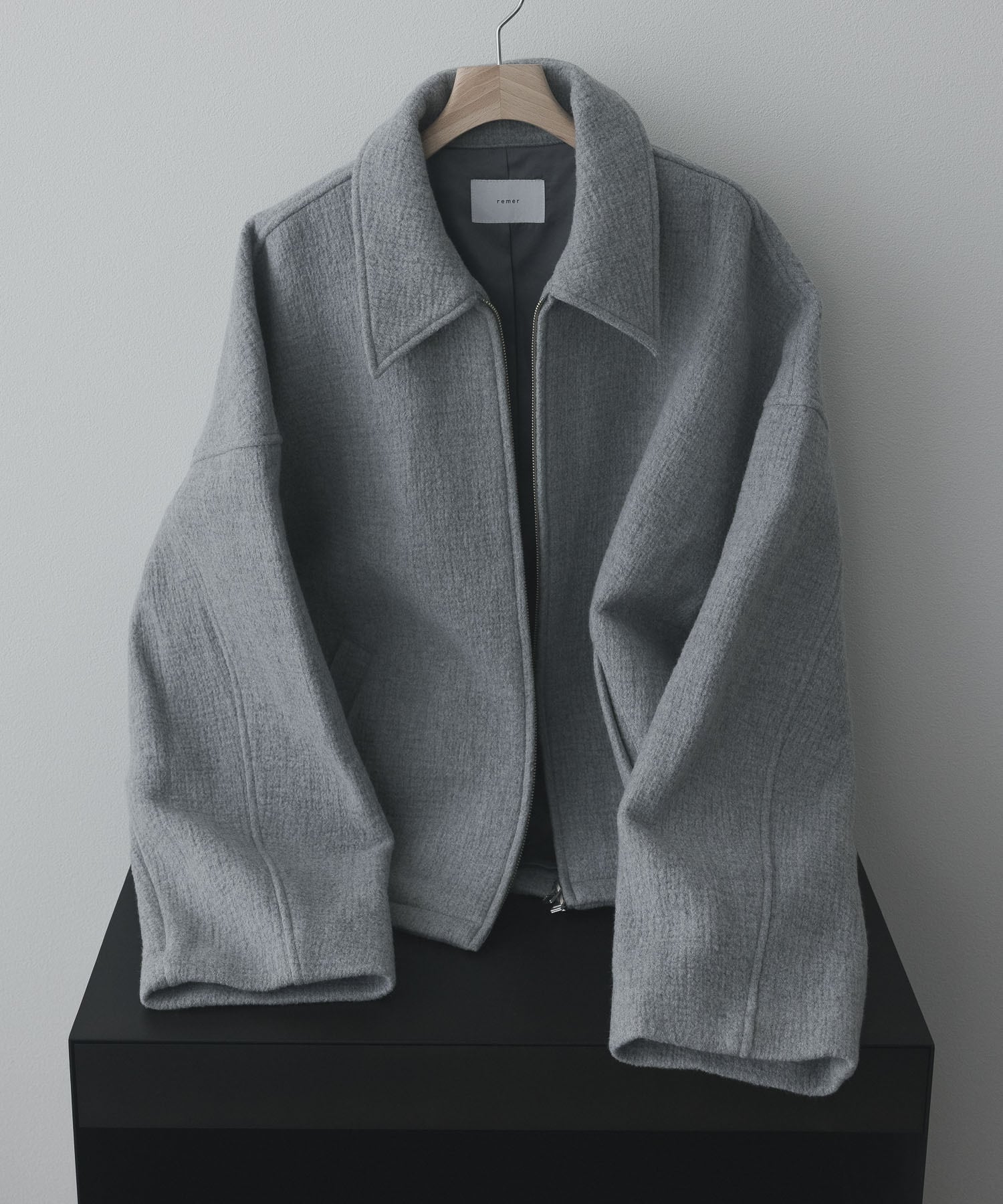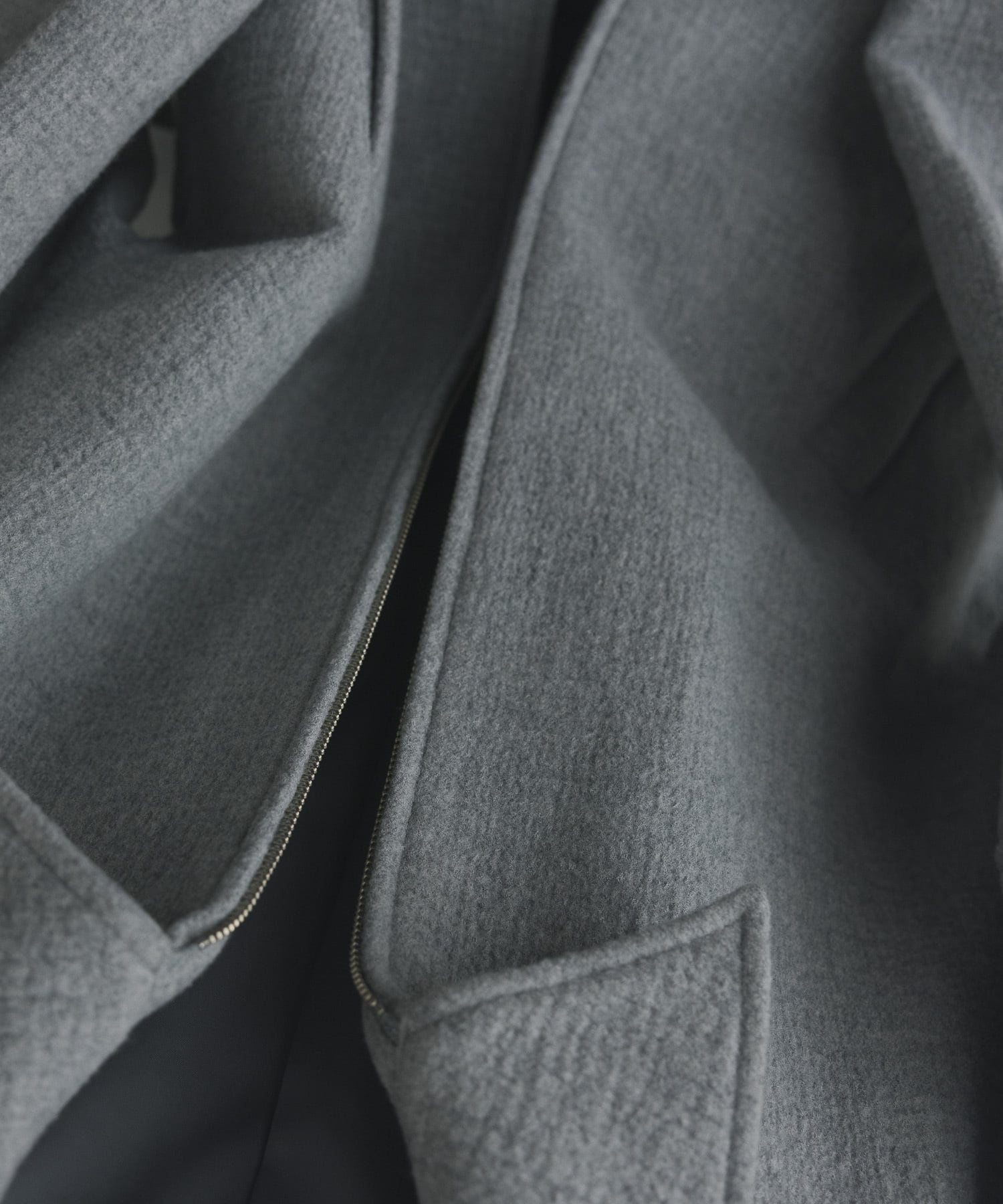 梳毛ウール100%を接結綾二重で織り上げ、極限まで縮絨を施した最上級のクレーターメルトンを採用した極上の冬アウター。表面にはクレーター状の凹凸が繊細に存在し、メルトン特有の端正さの中に僅かな荒さと表情を残したテキスタイル。重厚感のあるルックスに反して、ウール本来のしなやかさと軽さを併せ持つ。