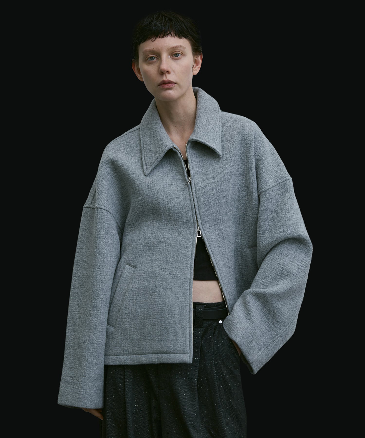 loose crater wool prime jacket / gray