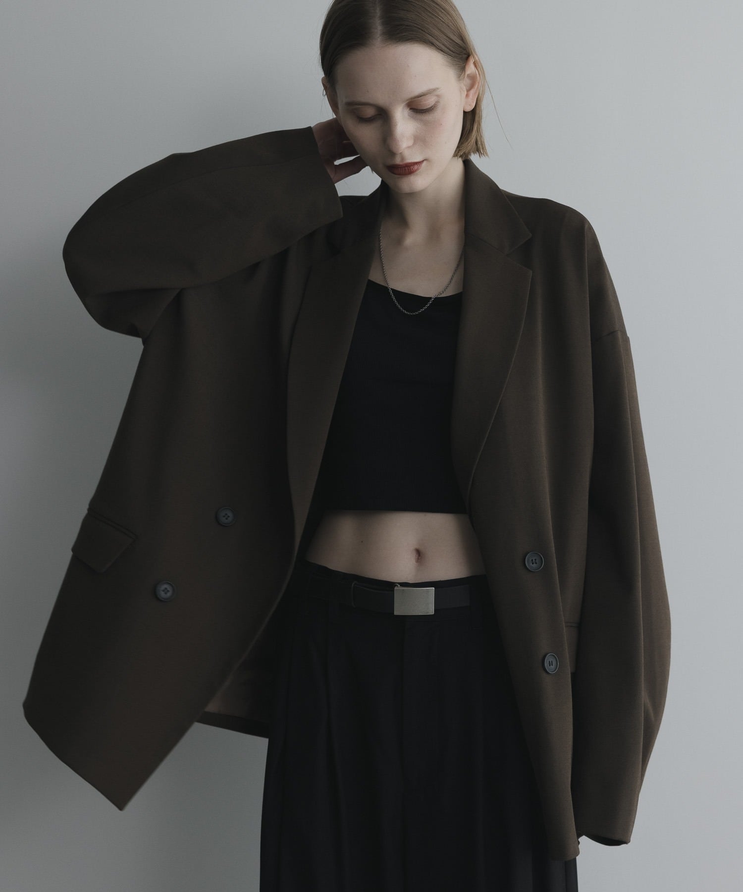 loose basic double tailored jacket / brown